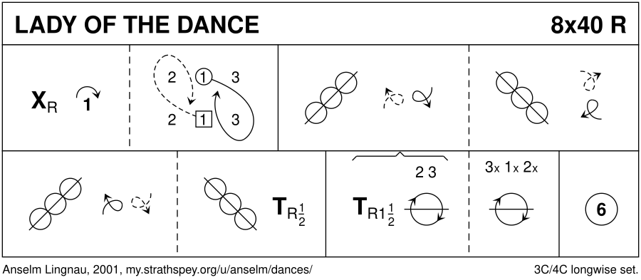 Reel · 40 bars · 3 couples · Longwise - 4 (Progression: 213) · Usual number of repetitions: 8