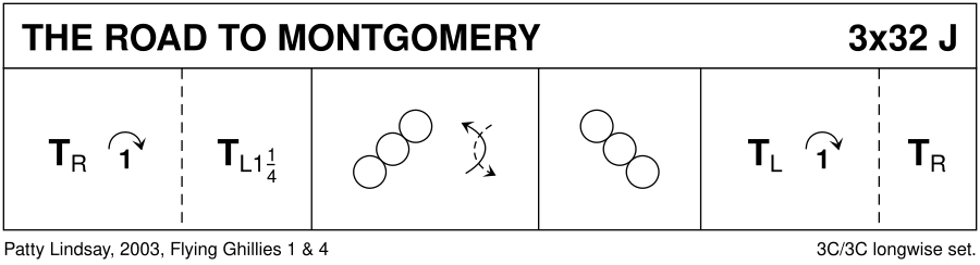 1– : 1c turn RH | cast (2c up) ; turn LH to face 1cnr 9– : 1c+1cnrs diagonal Reel4, at end 1c pass Lsh to face 2cnr 17– : 1c+2cnrs diagonal Reel4, to (2,1x,3) 25– : 1c cross LH | cast off (3c up) ; turn RH (2,3,1)