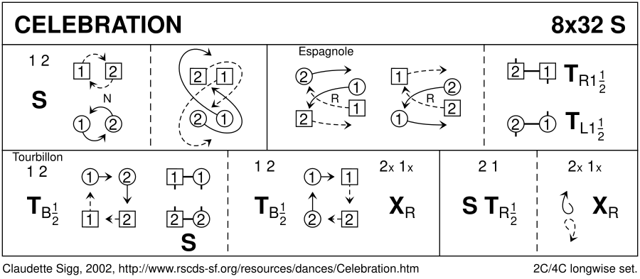 See also: A Celebration (S32, 4/4L, Skelton: Celebration (Skelton)), A Celebration (M64, 4/4L, Cairn Country Dancers), The Celebration (S32, 3/4L, Cook: Salvington)