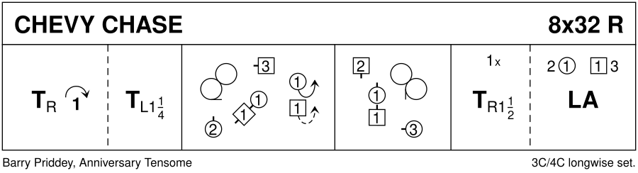 1-8 : 1s turn RH, cast 1 place, turn LH 1.1/4 times to end with 1L facing her 1st corner with partner behind her 9-16 : 1L followed by partner dance full diagonal RSh Tandem reel of 3 with 1st corners (RSh to 2M). At end, 1s pull back LSh to face Ladies' side 17-24 : 1M followed by partner dance diagonal LSh Tandem reel of 3 with 2nd corners (LSh to 2L). At end 1M pulls back RSh to face partner 25-32 : 1s turn RH 1.1/2 times & dance LH across (1M+2s & 1L+3s) ending in 2nd places own side. 2 1 3