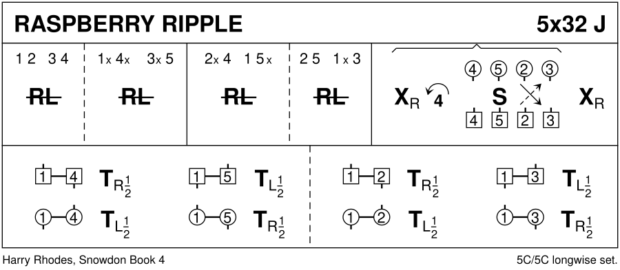 1-8 : 1s+2s also 3s+4s dance 1/2 R&L, 2nd+3rd place couples also bottom couples dance 1/2 R&L 9-16 : Top couples also 3rd+4th place couples dance 1/2 R&L, 2nd+3rd place couples also bottom couples dance 1/2 R&L 17-24 : 1s (at bottom) cross RH, cast up **while** others set & cross down 1 place, 1s continue to top & cross RH to own sides 25-32 : 1s 1/2 turn next person on sides (dance out), 1/2 turn next person (dance in), 1/2 turn next person (dance out) & 1/2 turn bottom person, end 4 5 2 3 1