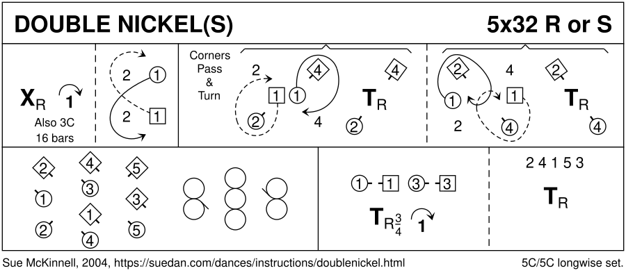 I wrote this dance for all of us who have passed a certain milestone (double nickel originally referred to the 55 mile-per-hour speed limit in the U.S.) and to prove we could still dance. The reel version proved a bit speedy (although a tweak to bars 23 and 24 helped), so we tried it as a strathspey and it works quite well.