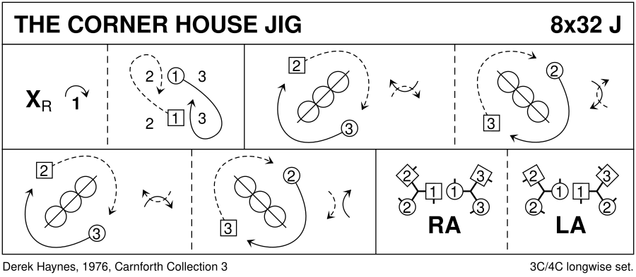 Jig · 32 bars · 3 couples · Longwise - 4 (Progression: 213) · Usual number of repetitions: 8