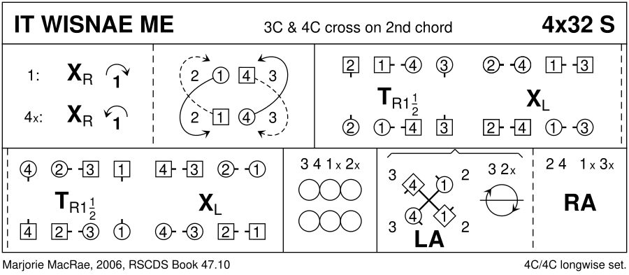 Strathspey · 32 bars · 4 couples (3x,4x) · Longwise - 4 (Progression: 2413) · Usual number of repetitions: 4