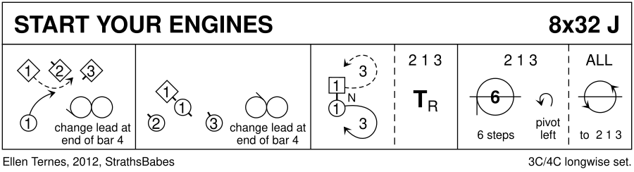 Devised by Ellen Ternes (ellenter [at] comcast.net) after learning, with great glee, that the very Italian-looking Dario Franchitti, winner of the 2012 Indy 500 race, is very Scottish! Suggested music: "Flights of Fancy," from Celebrate 50 Years of Dancing with the Boston Branch. The deviser is non-committal about the music, even noting that it could be danced as a reel.