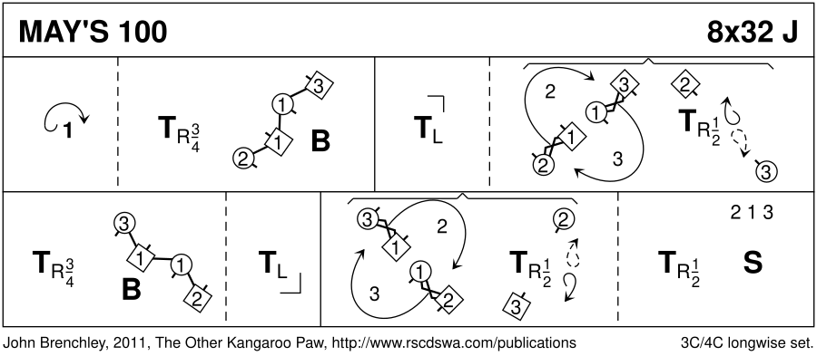 For Mrs May Brown on the occasion of her 100th birthday, 22 April 2011. Sadly. May subsequently died peacefully on 14 June 2011. May was a life member of the RSCDS Western Australia Branch and the deviser of several dances, including the McCulloch Strathspey published as a leaflet by the RSCDS in 1966