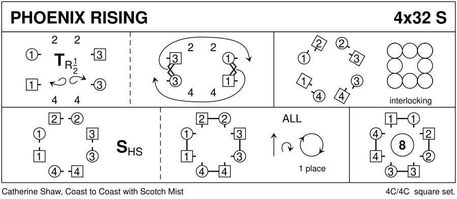 1- : 1c+3c ½ turn opposite RH | cast away ; 3c & 1c in promhold dance ½ way clw outside set to original places 9- : Interlocking Reels4, starting RSh to corner 17- : All set HS to P ; dance in, NHJ with P, touch NH with corners, pull back RSh, dance out & chase 1 place clw (4,1,2,3) 25- : Circle8 round & back (4,1,2,3)