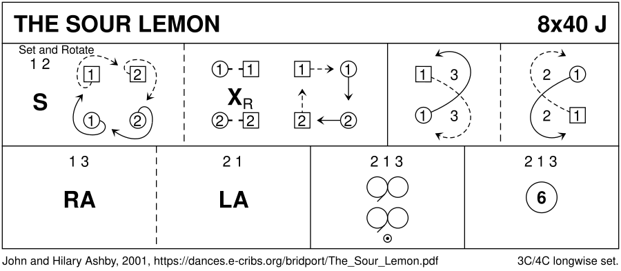 Jig · 40 bars · 3 couples · Longwise - 4 (Progression: 213) · Usual number of repetitions: 8
