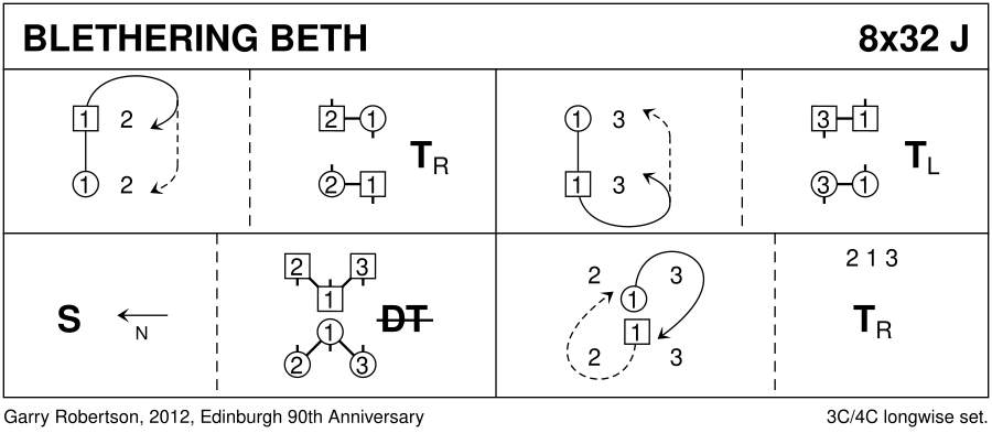 Devised by Garry Robertson, RSCDS Edinburgh Branch, for Beth Robertson in 2012 for her new found and incessant vocal skills.