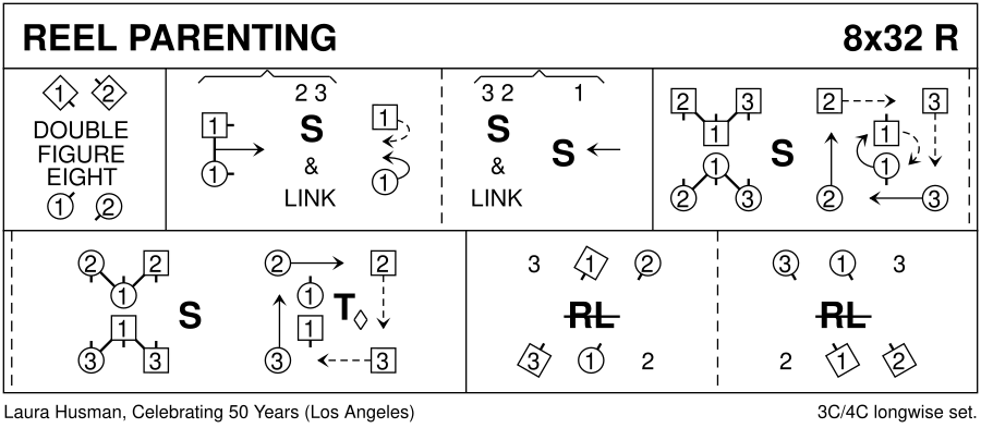 Reel · 32 bars · 3 couples · Longwise - 4 (Progression: 213) · Usual number of repetitions: 8