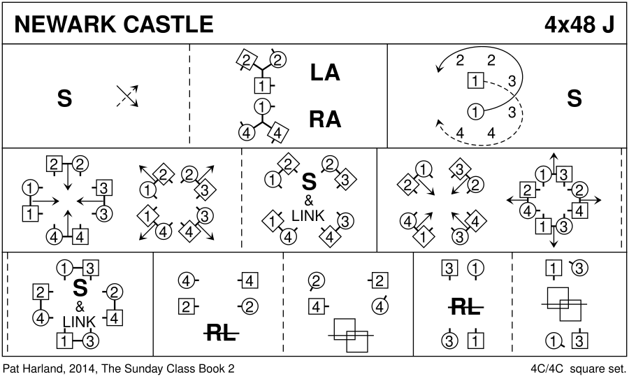 1- 8 : 1s set & cross into middle of set, 1L dances LH across with 2s as 1M dances RH across with 4s 9–16 : 1s cross down between 3c and cast up outside the set to own place | 1c set 17–20 : All, NHJ with partner, Advance & Retire with corner 21–24 : All Set&Link 25–28 : All Advance to centre with corner, Retire to Sq set formation with next person (1M+3L, 2M+4L, 3M+1L, 4M+2L) 29–32 : All Set&Link 33–40 : 1st & 3rd positions (2M+4L & 4M+2L) ½R&L & ½ Ladies’ Chain 41–48 : 2nd & 4th positions repeat