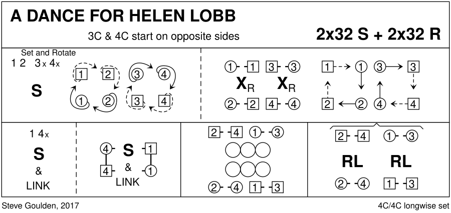 In February 2018, the deviser, Steve Goulden, asked the crib and diagram authors on SCDDB: "Could you change the format of this dance to Sx2/Rx2? That way each couple gets to dance each rhythm.". The original description uses the name "A Dance for Helen". It is not clear when and why the second name was adopted.