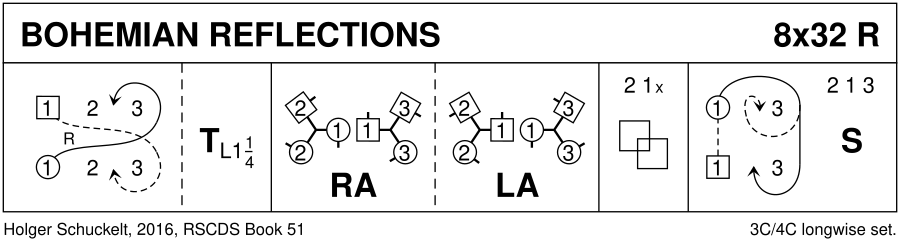 Reel · 32 bars · 3 couples · Longwise - 4 (Progression: 213) · Usual number of repetitions: 8