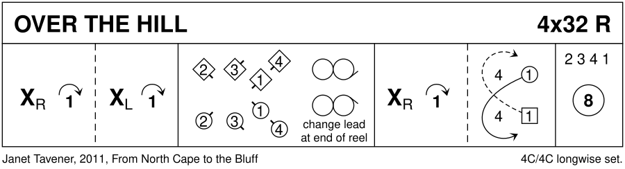 : 1c cross RH | cast (4c up) ; 1c ½ Fig8 up round 4c (2,3,4,1)