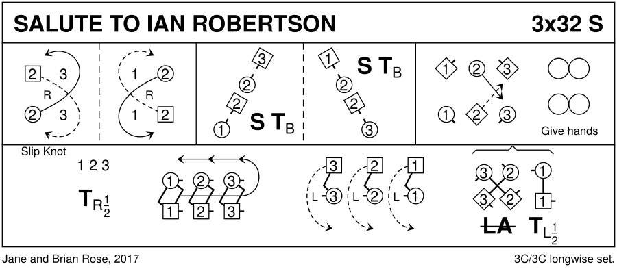 The dance has been written to mark Ian B Robertson’s 50th birthday. Ian is well known for providing superb music for dancers with either his fiddle or accordion. However not many people are aware that Ian is also a proficient dancer although not always familiar with all the dances. This dance has been written so that the couples dance primarily with, or mirror, their partners and can be helped by the giving of hands.