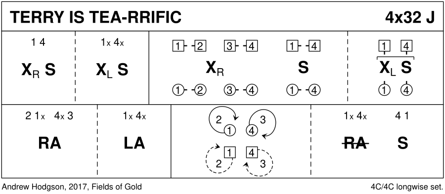 : 1s facing 4s set (1 bar up/down, 1 bar facing across), 1s+4s cross LH &