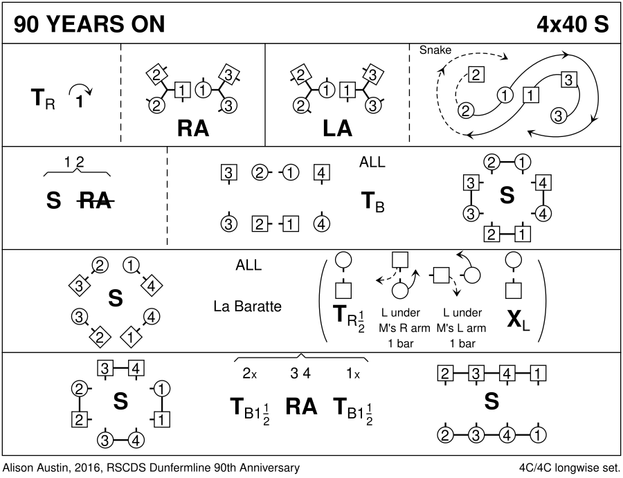 Strathspey · 40 bars · 4 couples · Longwise - 4   (Progression: 2341) · Usual number of repetitions: 4