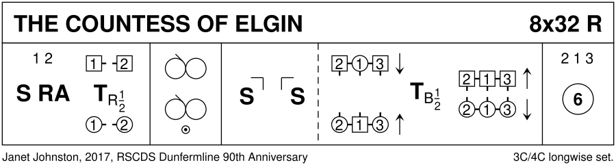 Devised by Janet Johnston, RSCDS Stirling Branch, 2017. The Countess of Elgin was involved in the early years with Dunfermline Branch and held office within the Scottish Country Dance Society.