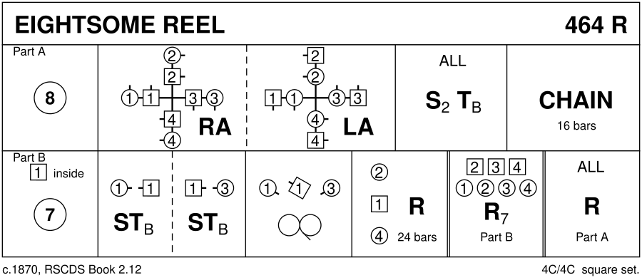 Reel · 464 bars · 4 couples · Square   (Progression: OnceOnly) · Usual number of repetitions: 1