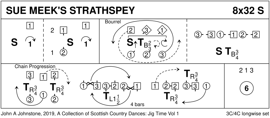Strathspey · 32 bars · 3 couples · Longwise - 4 (Progression: 213) · Usual number of repetitions: 8