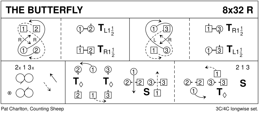 See also: Butterfly (R32, 4/4L, Collin: Musicians' Wedding), The Butterfly (J32, 3/4L, Orr: Silver Anniv.), The Butterfly (S32, 3/4L, Marchand: Ox2K), The Butterfly (S128, 8/8L, De Lange: 3rd Lustrum Dance Book (Delft))