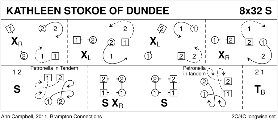 Devised on February 11, 2011, for Kathleen Stokoe, friend and fellow member of St. Andrew’s of Brampton (and to add to the repertoire of two couple dances).