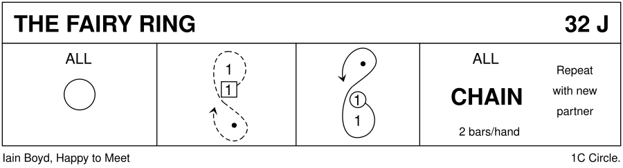 Jig · 32 bars · 1 couple · Circle (Progression: ChangePtnr) · Usual number of repetitions: ?