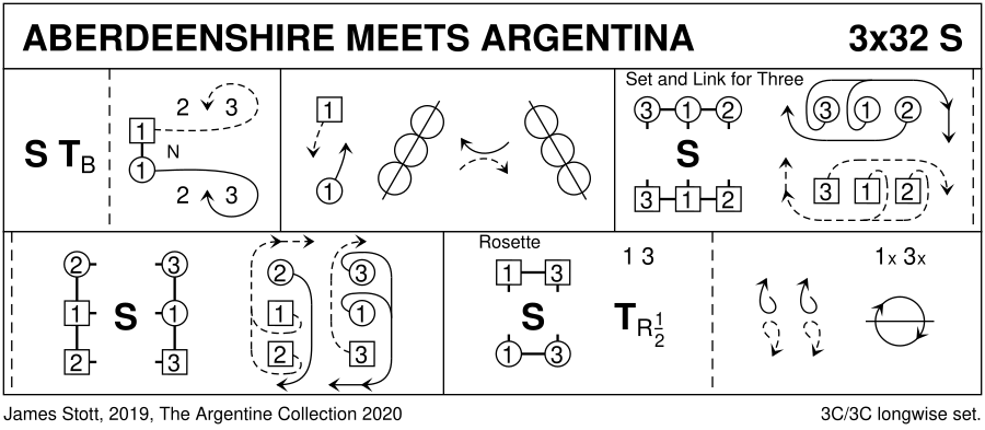 1-8 : 1s set, turn 2H & face down; 1s dance down & cast up round 3s to 2nd place own side (2s step up 5-6) 9-16 : 1s pass LSh to dance 1/2 diag reel of 4 with 1st corners, pass LSh to dance 1/2 diag reel of 4 with 2nd corners to end in 2nd place opp sides (3) (1) (2) 17-24 : 3s+1s+2s dance Set+Link for 3 couples twice. 2 1 3 25-32 : 1s+3s dance The Rosette: : 1s+3s join NH & set to partner, 1/2 turn partner RH remaining in centre facing partner; 1s+3s pull back RSh & chase clockwise 1/2 round. End 2 3 1