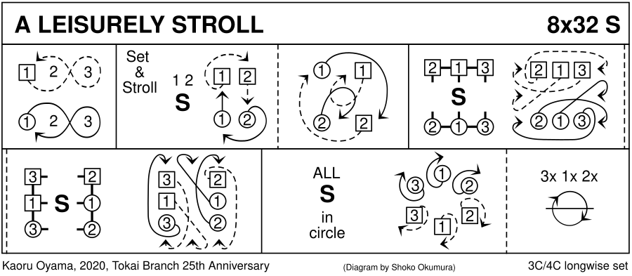 : *Set and Stroll:* 1c+2c set | 1W & 2M cast clw **while{2}** 1M & 2W dance across ;