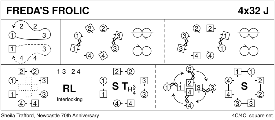 This dance was written for Freda Phillipson. Freda has been a loyal member of our Branch and Life member of the RSCDS for 47 years. During this time she has seved as a committee member, teacher, pianist and musical composer as well as a keen dancer. Over these years, Freda has enjoyed lots of trips to places all over Scotland including the Scottish Islands (These trips are known as Freda's Frolics!)