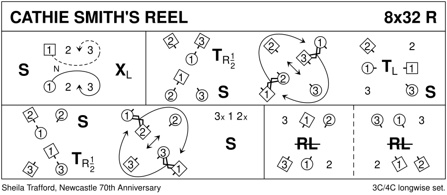 Dance devised in memory of Cathie Smith who died in December 2016. Cathie was a member of the Newcastle & District Branch of the RSCDS for many years and she was a founder member of Mike Barlow's Ponteland evening class. She was a very friendly lady and supported all local events. She is greatly missed by all her friends and those who knew her.