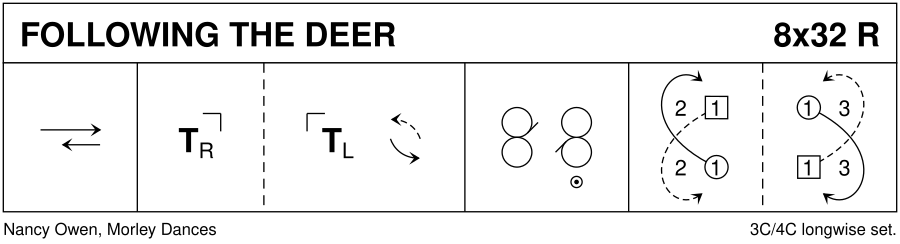 Reel · 32 bars · 3 couples · Longwise - 4 (Progression: 213) · Usual number of repetitions: 8