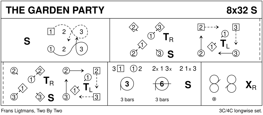 Level: advanced. "For Rik and Claire de Vroome, whose house and garden are very often open to their dance-friends". When danced to recorded music, any good strathspey would do, but I prefer a softer one, as there are many circles in this dance.