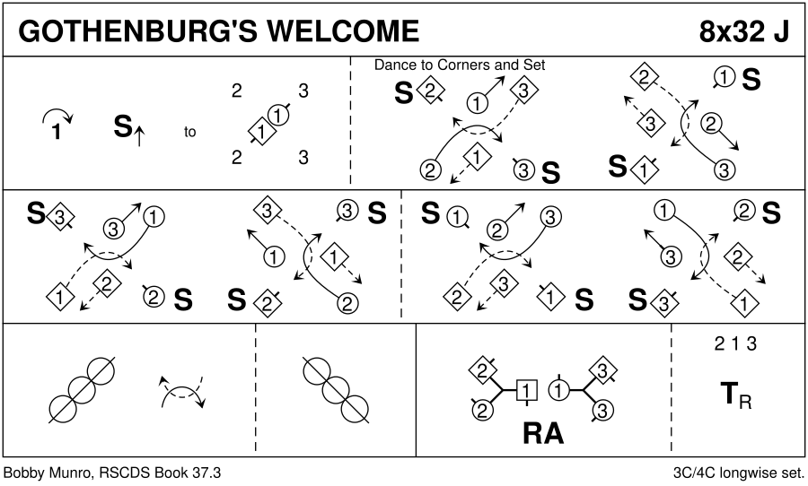 This dance was devised by Bobby Munro to mark the occasion of the 1st Scandinavian Scottish Weekend Course in Gothenburg by the Gothenburg Branch.