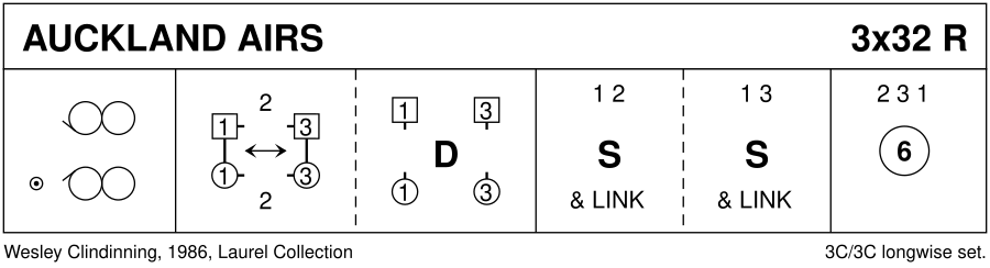 1– : Mirror Reels3 on sides, 1c in. 1c & 3c slightly in centre face up/down (1,2,3) 9– : 1c & 3c both NHJ A&R back to original places on sides facing P ; 1c & 3c dance BtoB (1,2,3) 17– : 1c+2c S&Link (4 PdB) ; 1c+3c S&Link (4 PdB) (2,3,1) 25– : Circle6 and back (2,3,1)