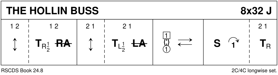 1– : 1c+2c A&R ; Turn RH ½ into | ½ RHA (2,1) 9– : 2c+1c A&R ; Turn LH ½ into | ½ LHA (1,2) 17– : 1c (BHJ) slip down the middle and up 25– : 1c set | cast off (2c up) ; 2c+1c turn RH