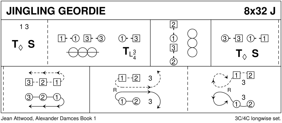 Jig · 32 bars · 3 couples · Longwise - 4 (Progression: 213) · Usual number of repetitions: 8