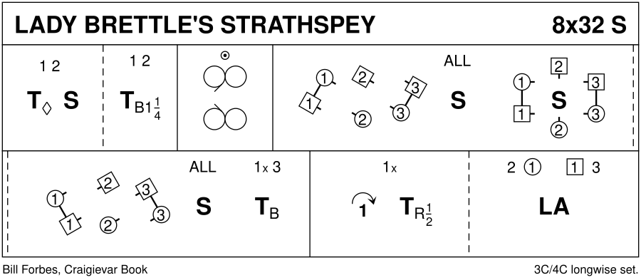 Strathspey · 32 bars · 3 couples · Longwise - 4 (Progression: 213) · Usual number of repetitions: 8