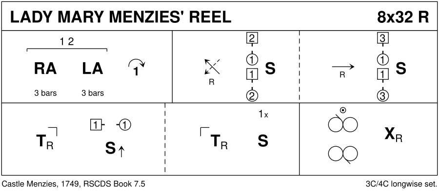 Reel · 32 bars · 3 couples · Longwise - 4   (Progression: 213) · Usual number of repetitions: 8