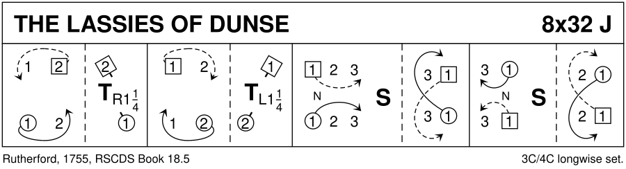 The Society’s version of this dance can be traced to Rutherford’s first collection of about 1755 where it is given as *The Lasses of Dunce*.