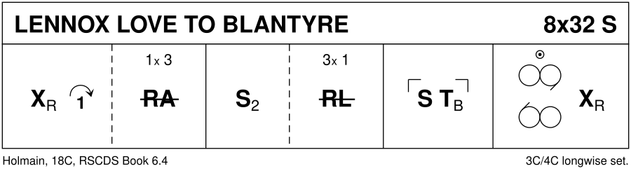 Strathspey · 32 bars · 3 couples · Longwise - 4 (Progression: 213) · Usual number of repetitions: 8