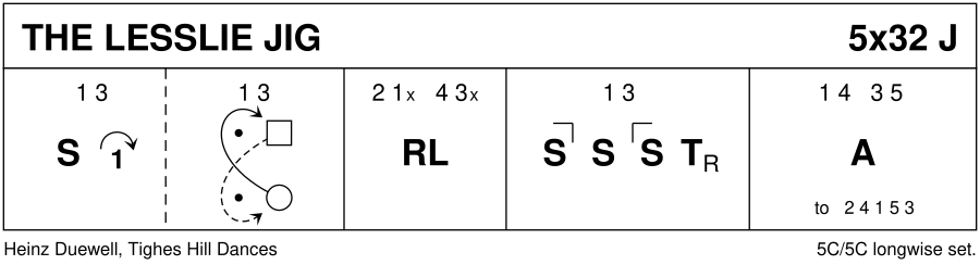 Jig · 32 bars · 5 couples · Longwise - 5 (Progression: 24153) · Usual number of repetitions: 5