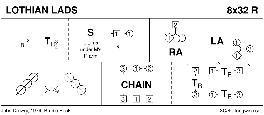 Reel · 32 bars · 3 couples · Longwise - 4 (Progression: 213) · Usual number of repetitions: 8