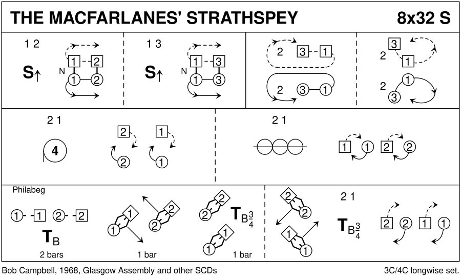 Strathspey · 32 bars · 3 couples · Longwise - 4 (Progression: 213) · Usual number of repetitions: 8