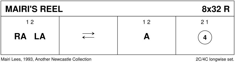 Reel · 32 bars · 2 couples · Longwise - 4 (Progression: 21) · Usual number of repetitions: 8