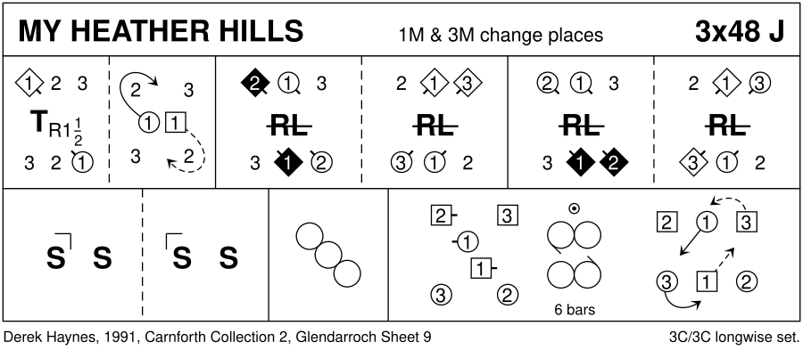 Jig · 48 bars · 3 couples · Longwise - 3 (Progression: 231) · Usual number of repetitions: 3