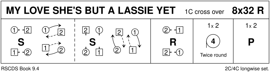 See also: My Love She's but a Lassie yet (R32, 2RR, RSCDS 101), My Love She's But a Lassie Yet (h136, ?, Goodloe: Step Dance Book 2)