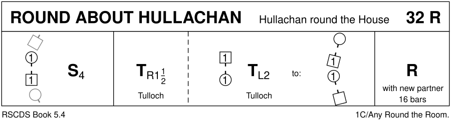 : Tulloch turn R ; Tulloch turn L, ending in partner's place facing next dancer