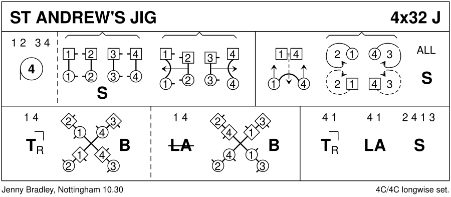 Jig · 32 bars · 4 couples · Longwise - 4 (Progression: 2413) · Usual number of repetitions: 4