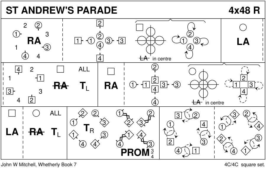Reel · 48 bars · 4 couples · Square (Progression: ChangePtnr) · Usual number of repetitions: 4